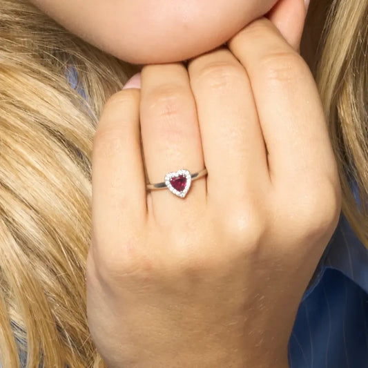 Luca Barra - ANELLO DONNA IN ACCIAIO CON CUORE CON ZIRCONI ROSSI E BIANCHI