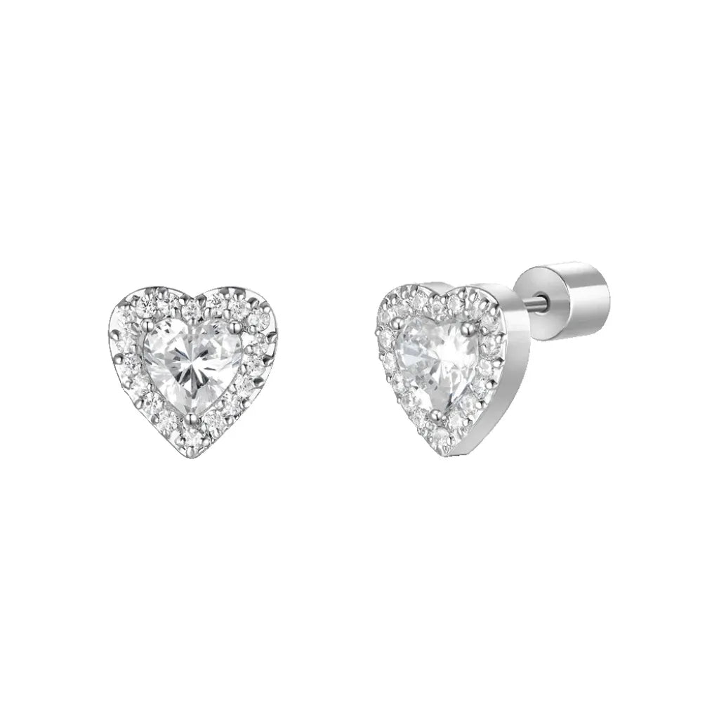 Orecchini Donna Luca Barra OK1586 Cuore Zirconi Bianchi – Gioielli Eleganti in Acciaio