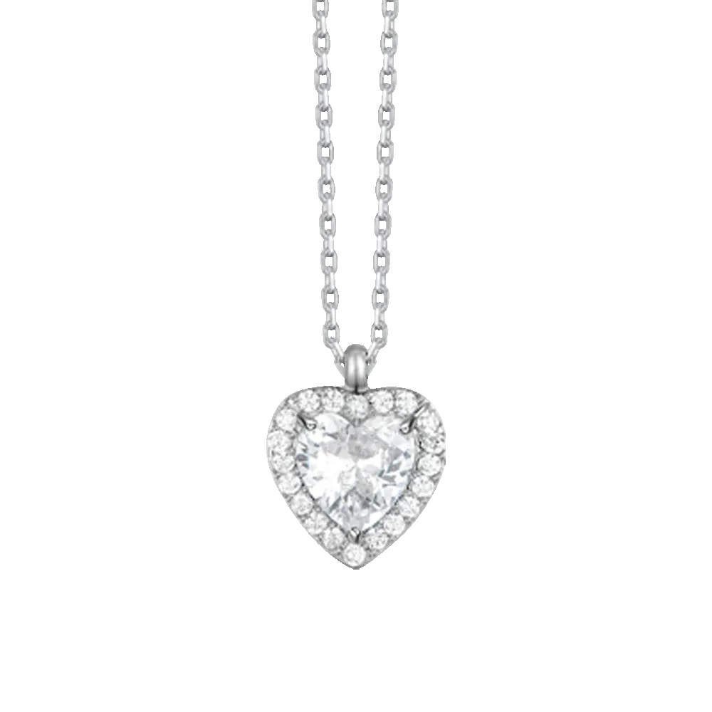 – Pendente: Cuore con cristallo bianco centrale e contorno di zirconi